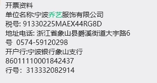 [转到父目录] 2026/4/15 14:52 15076 6478123f4bb0d22f6e074633fff4f1e.png 2026/4/15 16:44 110710 宁波乔艺服饰有限公司_200.00_26312000002307194971_.pdf